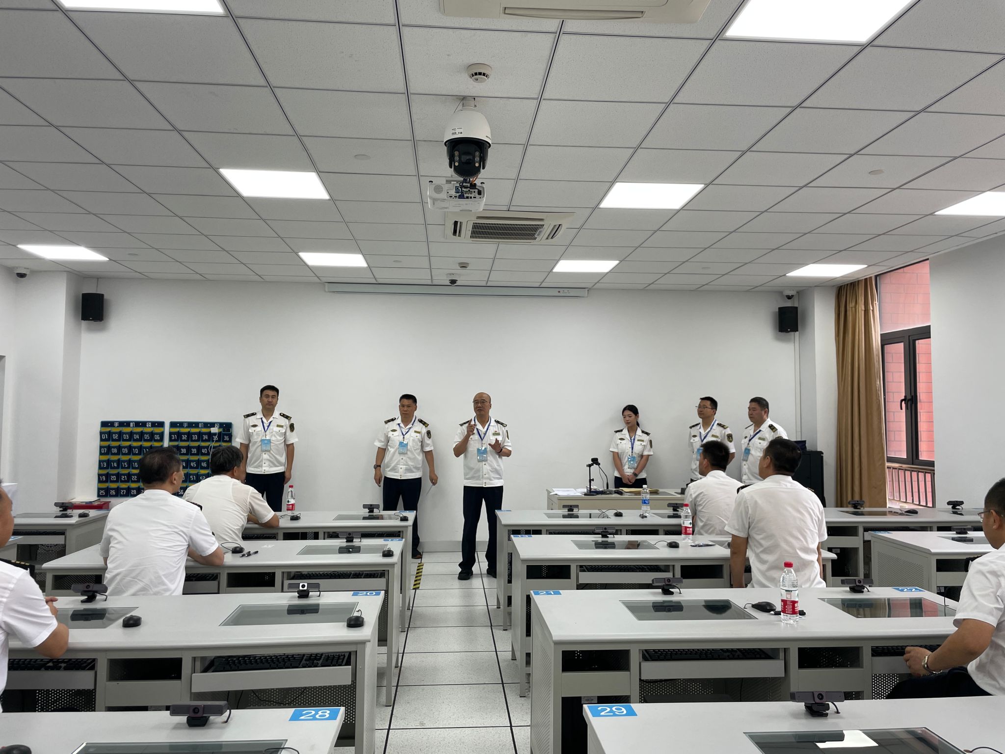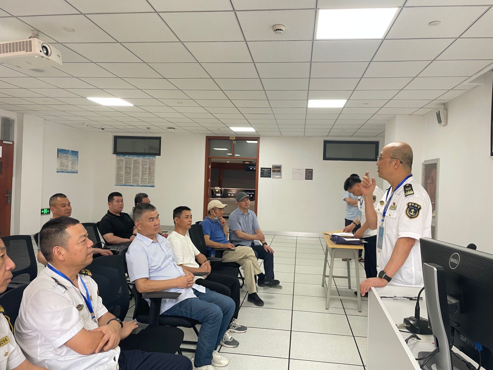 浙江海事局船员管理处陈坚文处长于考试考核当天,视察了理论考场及航海模拟器实操评估场地,对学院的各项保障工作给予了高度肯定。