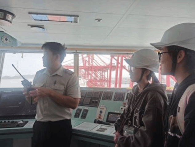 随后,在船员的引导下一行人前往操作室参观学习。各种复杂的设备、指示灯眼花缭乱,课堂的理论知识也难以完全应对实际应用,团队成员深感学好专业课程的重要性,只有更加扎实地掌握专业知识,才能在未来的实践工作中不落下风,展现海运学子的实力。
