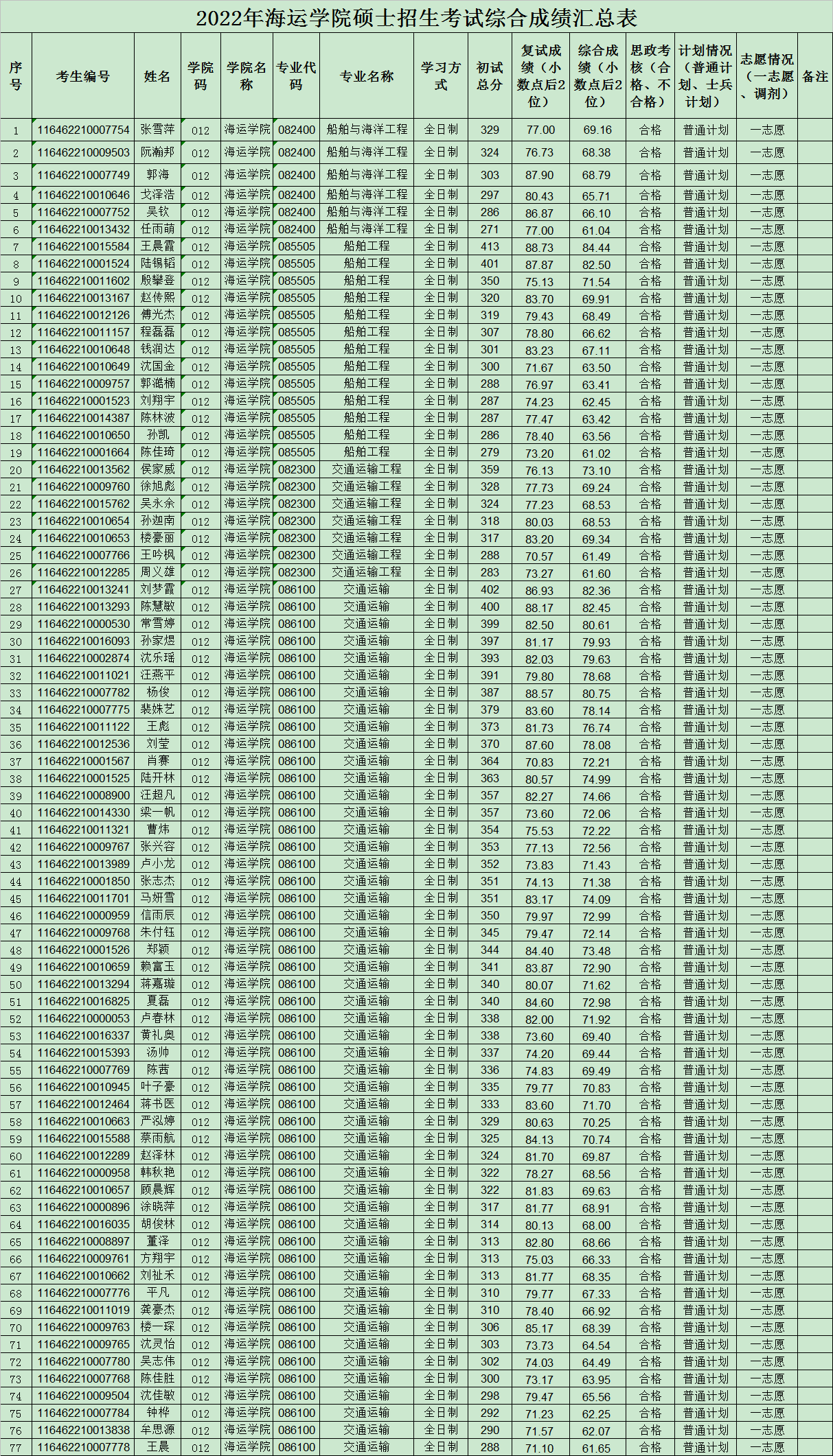 2022年吃瓜视频 硕士招生考试综合成绩汇总表发布版(0329)