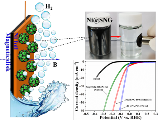 昂贵的铂金属催化剂制约着电解水制氢的规模化应用。为寻找替代品,课题组采用镍与氮掺杂的碳材料构建催化相界面的设计思路,合成出核壳结构的石墨烯包覆镍纳米球复合材料。该材料用于电解水制氢的阴极催化剂,表现出较低的析氢过电位和出色的循环稳定性,为进一步开发铂催化剂的替代材料提供重要理论参考